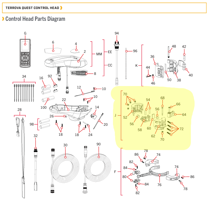 This Stow Lock Collar Assembly is used on Quest Terrova & RT Terrova Trolling Motor Models with a 72" shaft.