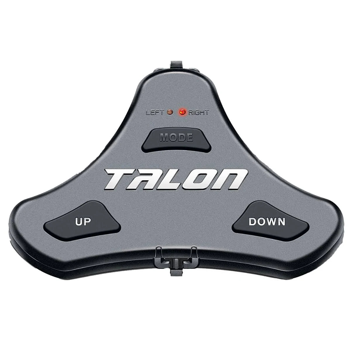 The MODE button acts like a toggle switch to operate either the left, right, or both Talons simultaneously. The LED’s will illuminate to indicate which mode is active. If you are operating only 1 Talon, you will need to learn the switch to the Talon (left or right) that you wish to operate. If you are running 2 Talons, you will need to learn the switch 3 separate times. 1. Left 2. Right and 3. Both. Use the MODE button to select the right. left, or both Talons.